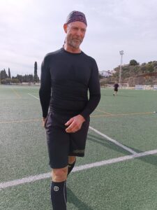 Dave the cab then scored the goal of the game, lobbing Alan in the Blacks goal to pull the red team back to a one goal deficit.