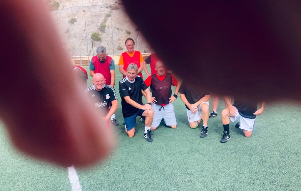 The last quarter saw another great goalkeeping performance from Pat Jennings in goal for the blacks as the reds made one final, desperate attempt to hit the net. Laurie made at least three great saves to secure a valuable clean sheet for the blacks. Final score Blacks 2-0 Reds. A tight game with some excellent football by all concerned. Following the game, the lads went to the bar to celebrate Eddie’s 65th with a few extra jarra’s of the local brew. Cheers Eddie!