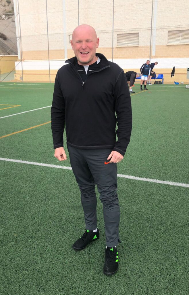 Anyway, Breck had surprisingly pulled together two evenly matched teams….and it ended 2-2…….What a feast of fast moving tikka takka footie was presented by two teams proving there is indeed life after death. With little Al (Torrequebraaaada) celebrating his 270th birthday (he doesn’t look a day over 269) the blacks were determined to deliver a birthday win for the sad (we all ‘ate Leeds) levis wearing 80s DJ. The blacks looked to be packed full of pass and move flair.