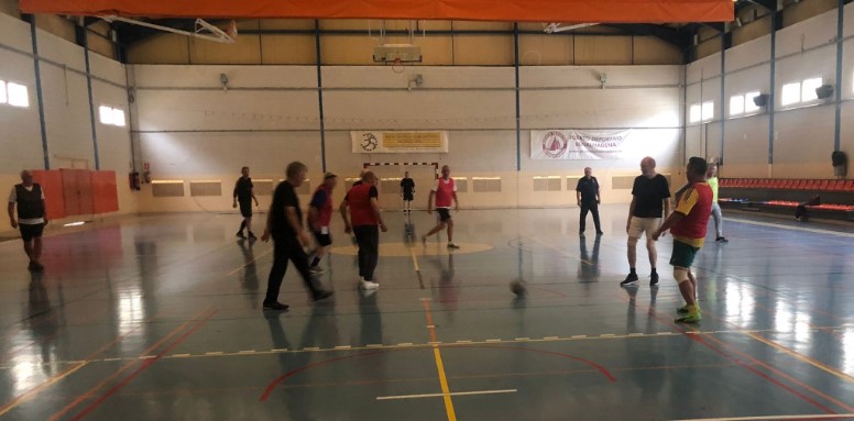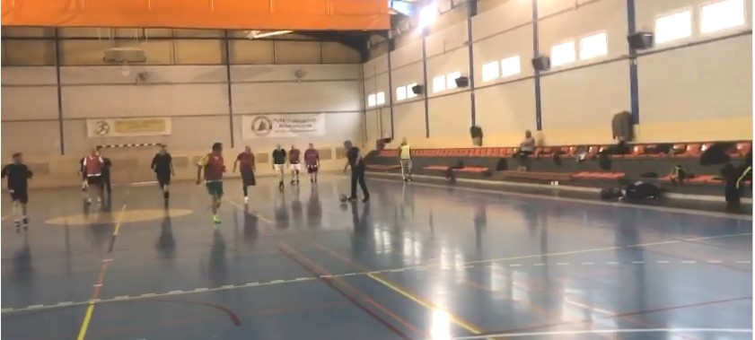 Welcome soccerball fans to the Walking Football / running football indoors at the Polideportivo. Serious shout out to all the ageing guys who made it to the ground through the historic deluge to put in a shift of bif baf knockabout Pep tikka takka bollocks footie. Once again, the aged players were thankful to Keef for using his super-negotiating skills to get the boys into the indoor gym circa 1968. The boys had a good early workout on the gym bars before an afterschool detention.