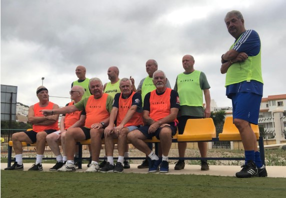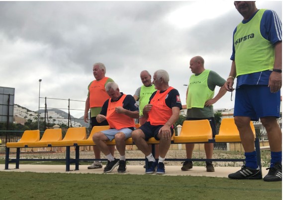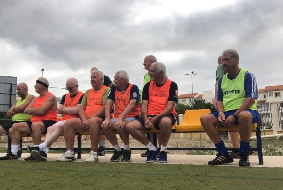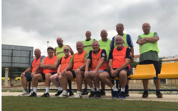 Due to a late call-off 11 amigos assembled under welcome overcast skies for the Thursday session. 5 lemons against 6 tangerines was agreed, with Keith in a dual role as player and ref. As this was Bob’s last game for a few weeks he was allocated an “easy shift” with the tangerines. This decision also pleased the Crocodile as he was getting scunnerd with Bob’s recent close defensive attentions!