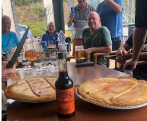 POST MATCH…jugs of beer a go-go ordered to wash down the huge empanadas provided by Dave the Owl.