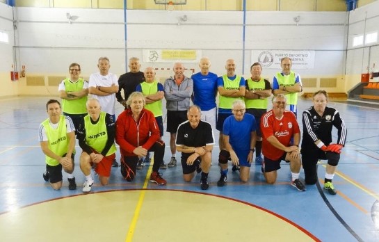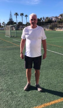 It was another fine day at the Polideportivo as the so called “old fart’s” game kicked off in front of the bar area. Two evenly matched teams lined up against each other with the blacks deploying their talent in an innovative diamond formation. Dave was busy up front and well supported by t’other Dave in midfield with Pat providing some of the most canny wing play on the left since Eddie Gray graced the Scottish shirt. Mick provided a daunting barrier in goal with the Fish and Ken providing some solid defensive play.