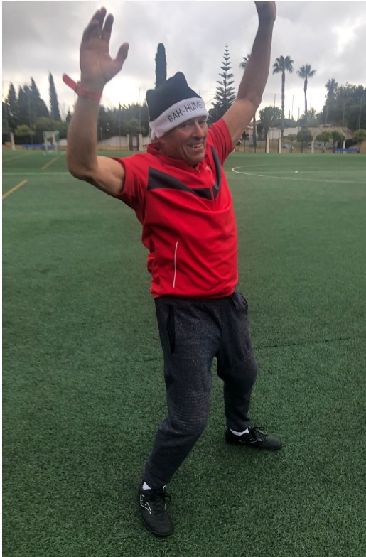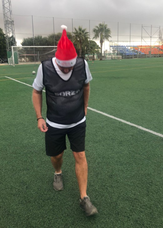 With Kevo dropping into goal, Stephen moved into the heart of the defence in preparation for an onslaught from the reds. Stuart had repelled most of the reds attacks with a fine performance at centre half. Steve was having another impressive game at the left side of blues’ defence (Opta: most interceptions) and the blues looked confident in holding out. However, Keef started to take up more forward positions and unfurled a range of intelligent probing passes into the heart of the blues’ defence. Surely it would only be a matter of time before they cracked. They hadn’t banked on what must have been one of the best goalkeeping displays seen on the hallowed Polideportivo turf. While the reds continued to pepper the blues’ goal with shots, Kevo rose to the challenge and pulled off a string of excellent saves which kept the blues’ noses in front. Get that man and ice-bath and a physio!