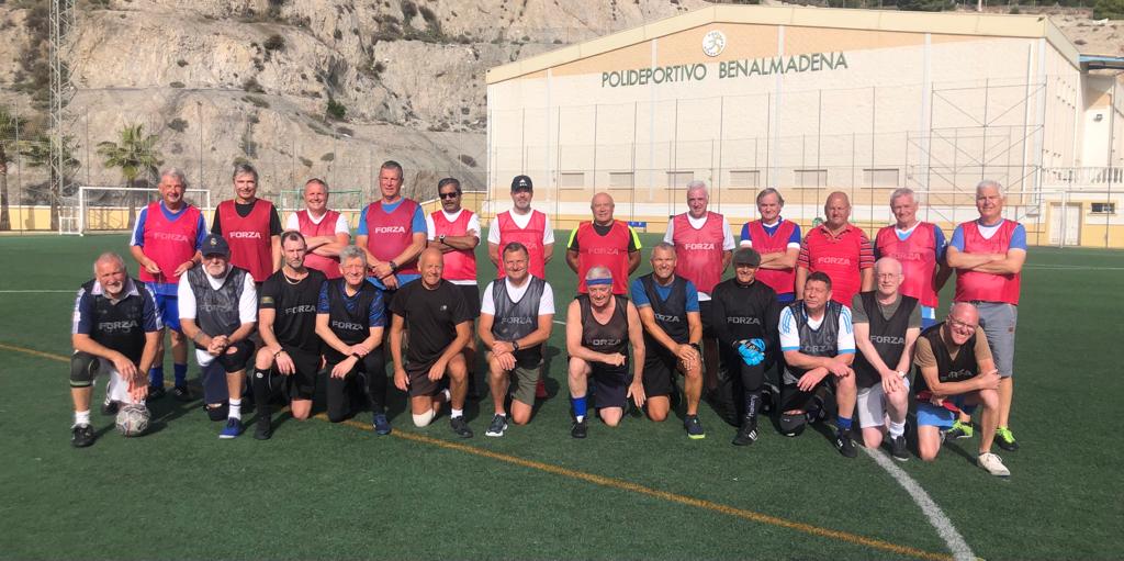 The blacks suffered an early setback when Welsh Steve had to pull-out during the warm up with toe-nail knack. Some thoughtful reorganisation ended up with the blacks playing with turbo-charged Dave the Cab as a fly goalie and (spoiler alert), probably one of the best goalkeeping performances ever seen on the hallowed plastic at the Polideportivo. Alan shored up the defence, nurturing his very cultured left foot. Big Mick was an imposing presence in the blacks midfield, while the mercurial Bambi ploughed a furrow down the wing and the dangerous mystery Hungarian reincarnation of Ferenc Puskas. The new boy was quite happy to weave his way past any number of English players in a recreation of Hungary’s demolition of England 6-3 at Wembley in 1953.