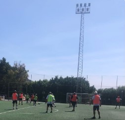 Dave the Owl then scored a well taken second goal and completed the set by once more hitting the other post. He quickly added a third for the yellows & Kevo got in in the act with a deceptive wind assisted curling shot that caught Pete Fish & Keith in two minds, each left looking at the other.