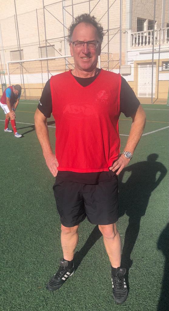 The Nog is teetotal, most unusual at the Poli, eccentric to say the least and an extraordinary human being not least because every match day he walks from Torremolinos to the Polideportivo and then back again after breakfast in the Pueblo, no mean feat for a man of his age. As you will see from his playing attire (see photo left) it is also his HV walking kit from his days as a school a lollipop man before being made redundant!