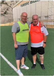 A tongue in cheek report of an enjoyable game at the PoliDeportivo yesterday, this despite the underhand antics of Keef totally disregarding the ethos of walking football rules, namely allowing players to enter the goal area, have unlimited touches of the ball and as the ‘self appointed’ referee not penalising players on his side for running.