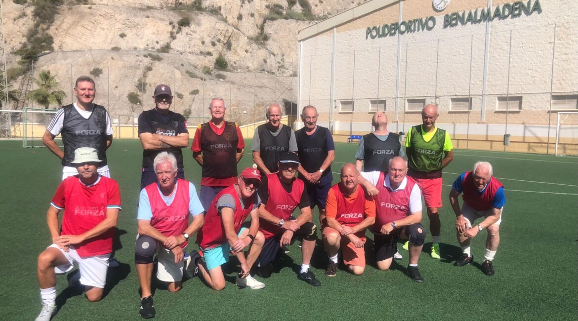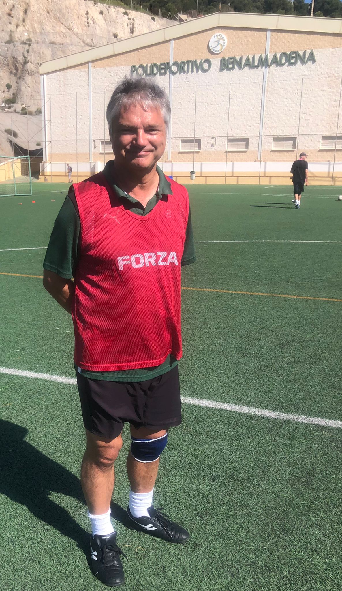Yet another excellent turnout at the Polideportivo necessitating in Keef having to again juggle names in an endeavour to balance the sides for both games as to age and ability. This did not meet with everyone’s agreement as 78 year old Walter was heard mumbling beforehand that he wanted to play in the ‘elite’ match so befitting his ability, apparently in his younger days he turned down the opportunity to sign professional terms for an Italian team. An avid writer of fiction novels he surely must have been getting confused with one of his stories!