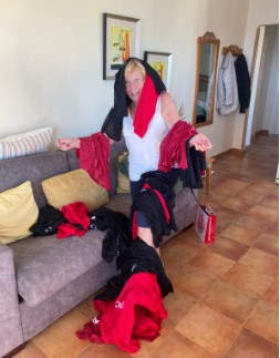 Who says the life of a WAG is all glamour, partying and shopping? Here’s a photo of  Gary’s partner, Veronica, having a fight with the team tabards.