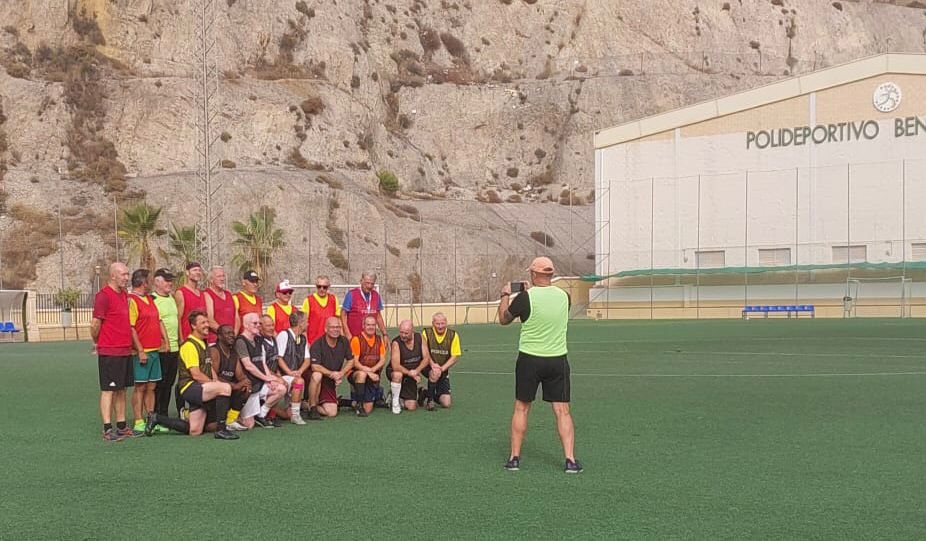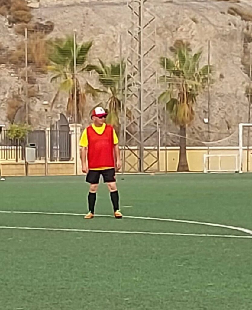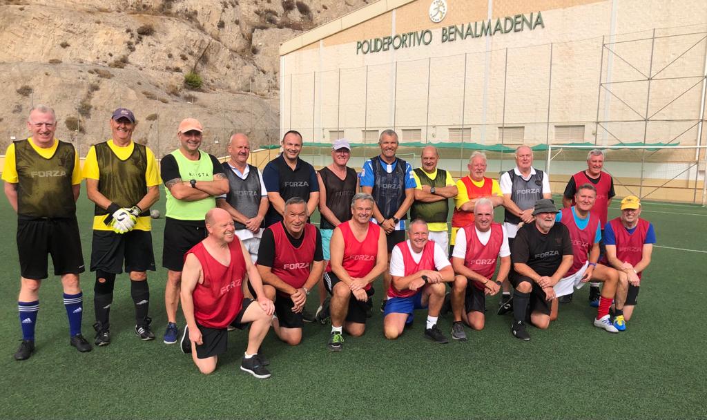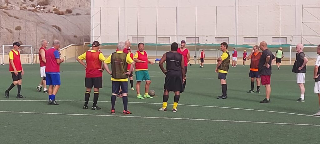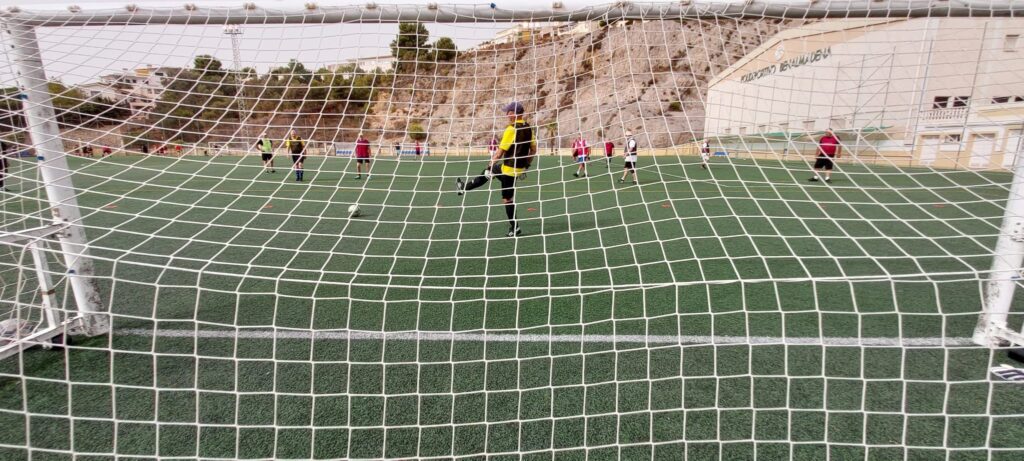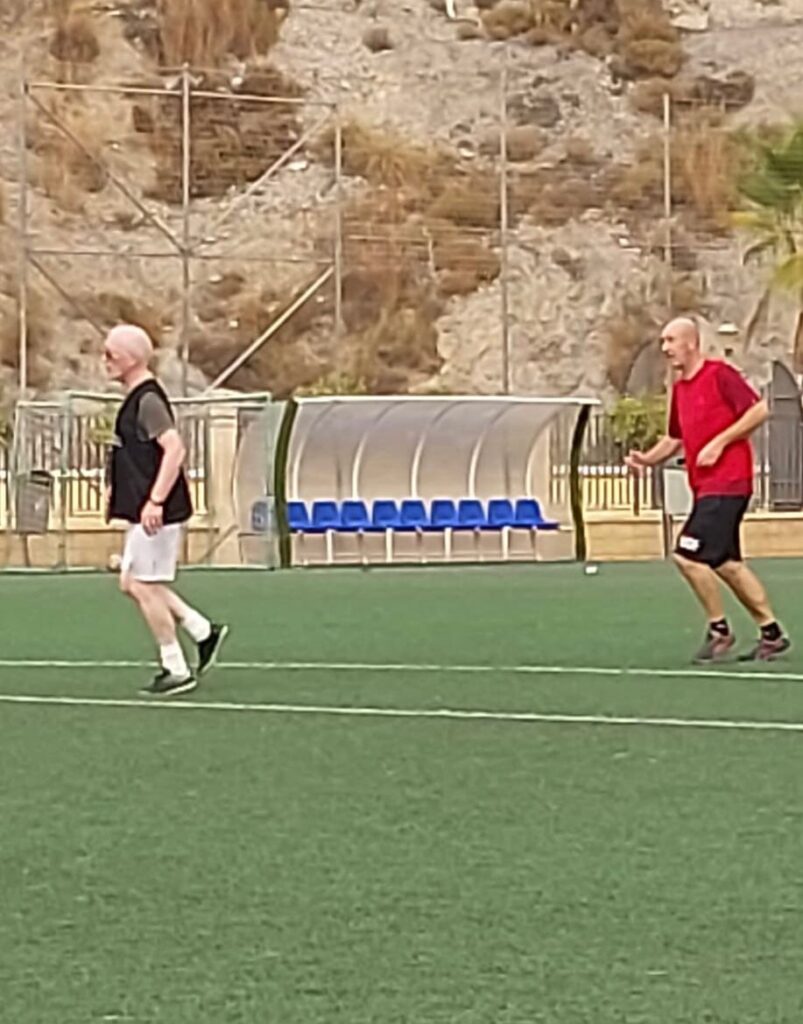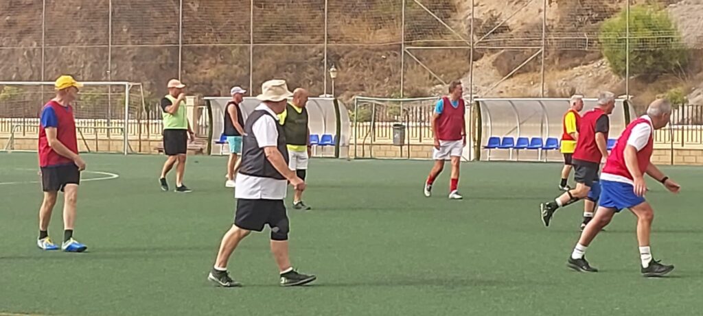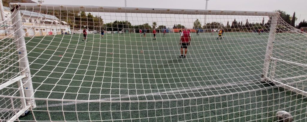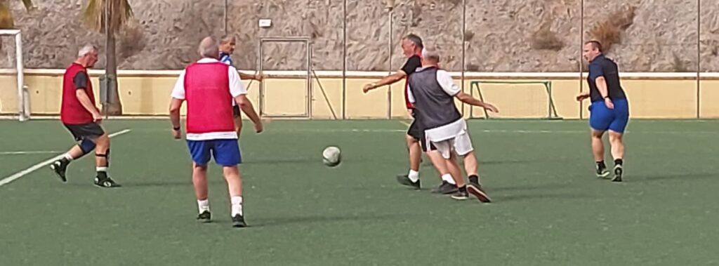 Two nine a side matches were played mixing players from both clubs in the warm Andalusian sunshine and for whatever reason also under the superb Polideportivo floodlights, this despite the need to preserve energy in the present crisis.