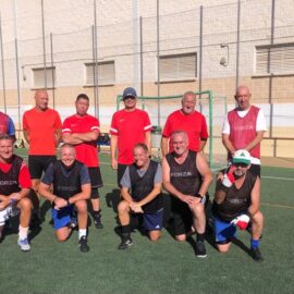 With Johnny getting a second wind and our Keef doing his whirling dervish thing, the reds started to dominate the latter parts of the game, enabling big Al to score a record breaking 6 goals for the reds. Final score Reds 6-3 Blacks. A tad harsh on the blacks who played well and would have scored more goals but for some courageous goalkeeping from the injured Kevo for the reds. With the usual great friendly spirit the guys shook hands and went to the bar to discover that Calahonda had failed to book the pitch for Saturday morning and the match was off. Ah well…….