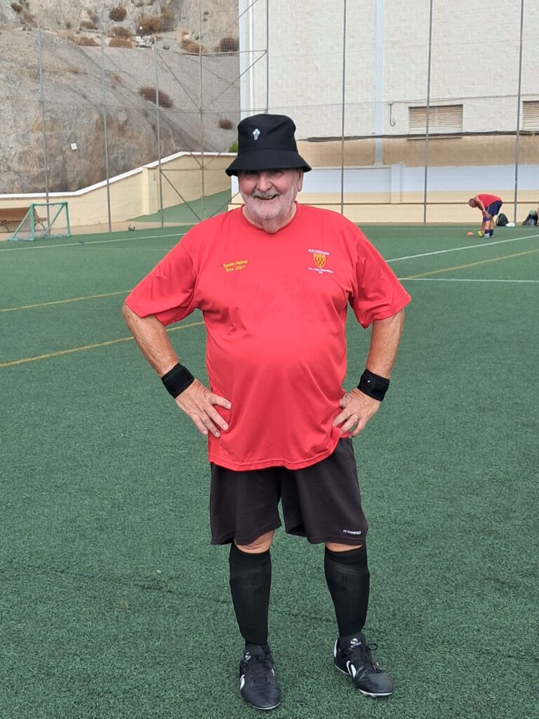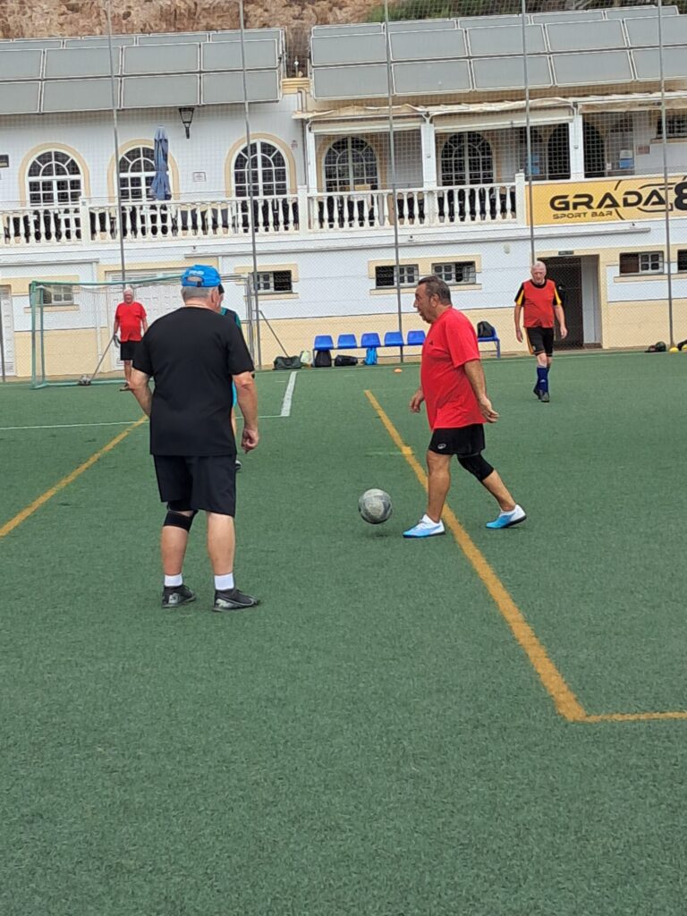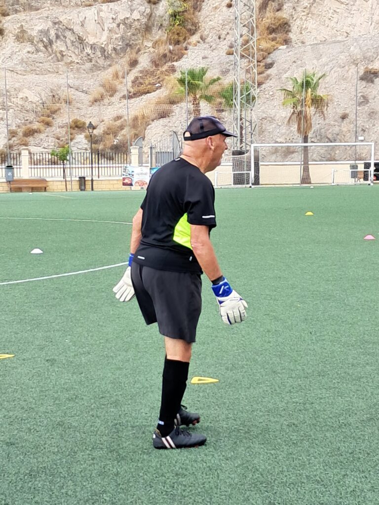The game took a little time to settle down, with a few “route 1” passes being fired into the lower atmosphere in an attempt to make quicker headway up the pitch. Ref John had to ‘ave a word to calm things down and remind the slow learners that the ball wasn’t allowed to travel at speed over head height. The Keynsham boys settled in at the back for the blacks with Mario in goal and Geoff and Bob playing twin centre halves.