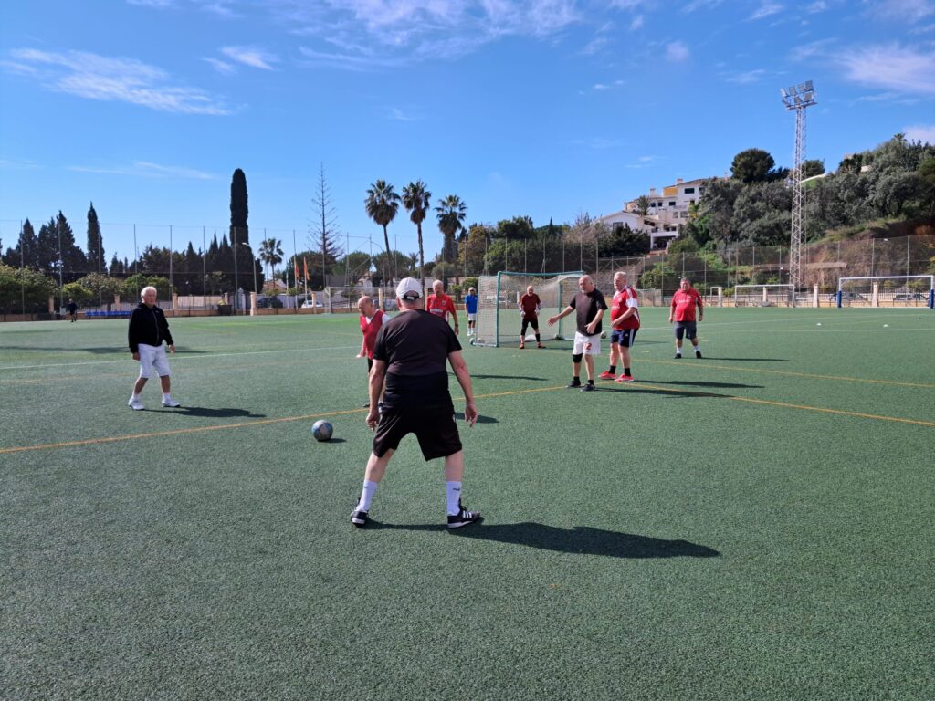 Bambi (Reds) was so slick though , that he fell over the ball while trying a Messi-style trick. Laughter from both sides , while Bambi hurled abuse in all directions . However , he soon made amends following a swift move – Keith to Geoff , and then on to Bambi , and in it went . 2-0 Reds .