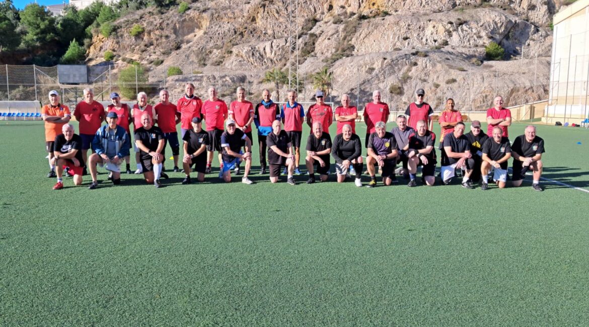 After the Christmas and New Year festivities. A group of hardy lads arose from slumber to take to the field at Polideportivo Municipal Benalmádena Pueblo. The Blacks lead by their supreme commander H. With Mick the Aberdeen Messi, Welsh, not Tom Jones, Steve making up a formidable defense. In midfield or somewhere like that  Dave cab and Vancouver Andy scurried around causing chaos as necessary. Up front Bambi shouted encouragement to his team mates from behind the opposition and goal poaching Portuguese Paolo did his thing. Almost  forgot another surprise from out of Los Boliches who else but long lost another Dave!