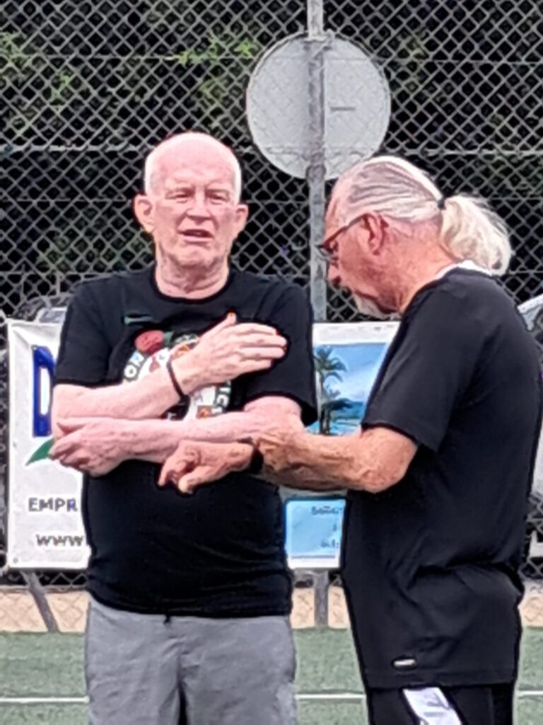 Then Keith hit the net again, Glyn scored straight through Eddie’s legs 6-3, could this really be happening?