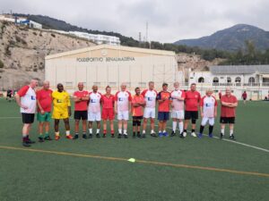 Benalmadena lined up with Dave 👑 in goal, with Dave 🦉, Colin and Keith across the back, Prak and Mercedes in the middle and Cornwalls’ very own Darren leading the line.