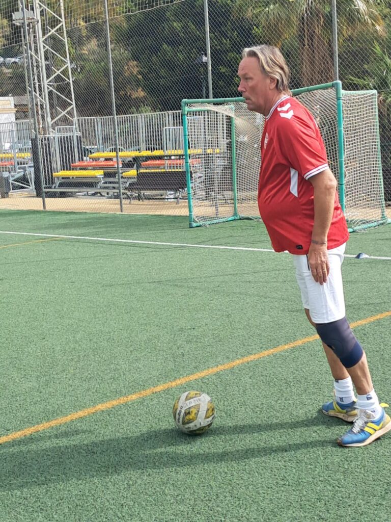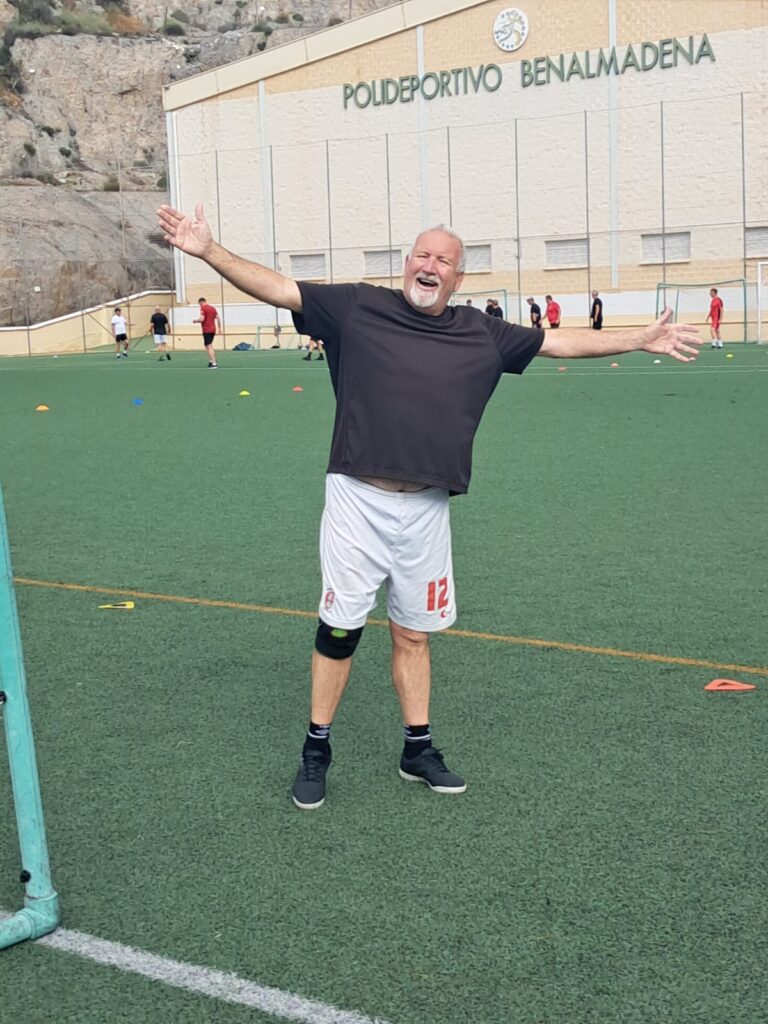 Just before halftime Tommy, who’d been playing a sweeper role and generally keeping back had a surge forward, let fly with a shot and immediately announced that he was done and limped off the pitch for an early shower and a rub down with a Sporting Life, Eddie suggested it was his fetlock that he’d pulled.