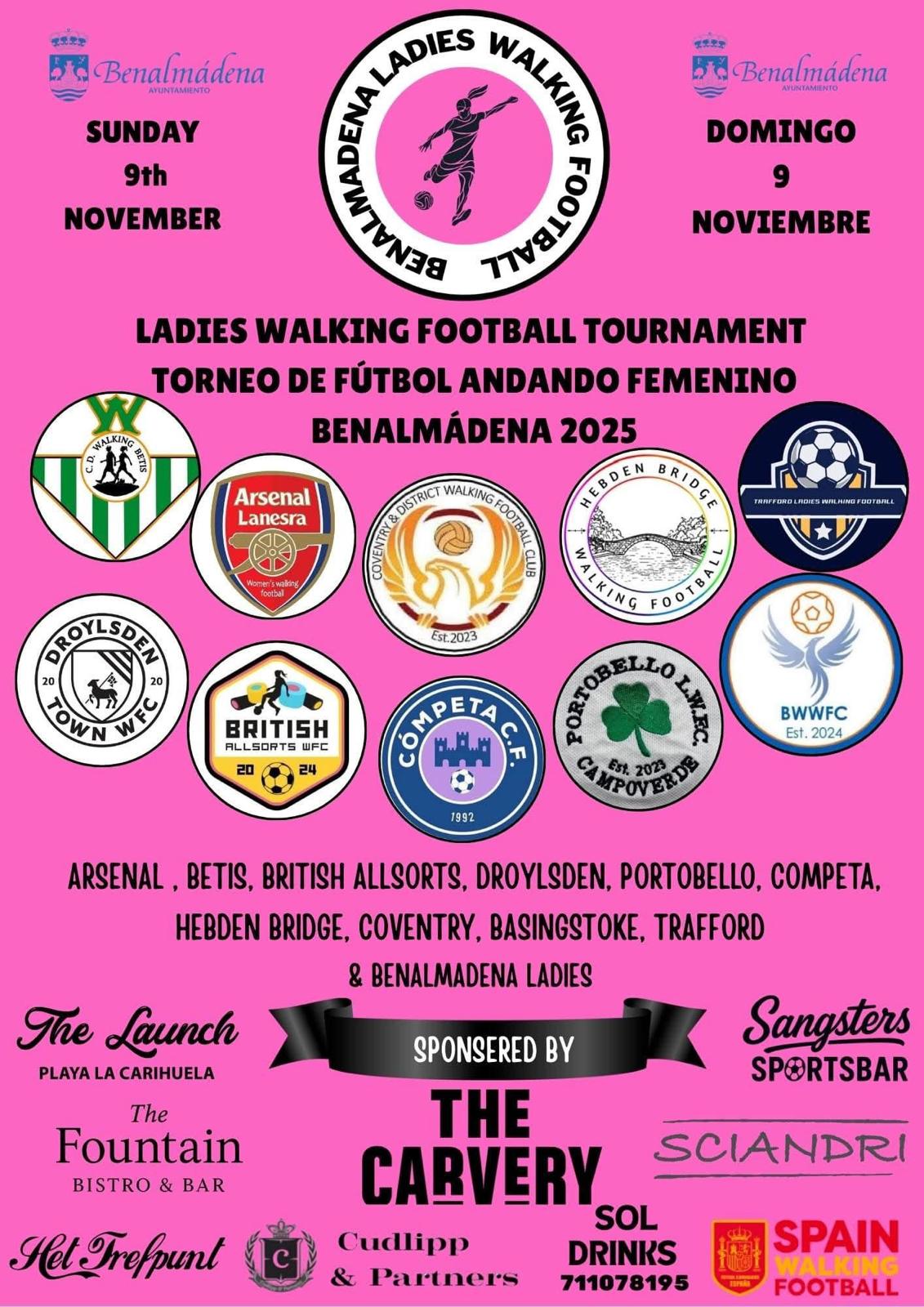 Faye and Mercedes are playing for Benalmadena Ladies in a 10 team competition being played on 9th November here at the polideportivo.
