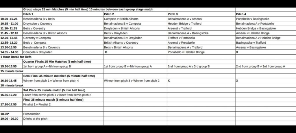 First match on the 9th kicks off at 9am. Come along and give them a shout! The full schedule is printed below .