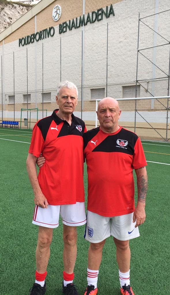 I joined WFSpain with Adam Chandler June 2017 at Elviria and we progressed to Benalmadena and Finca with Brian G. Back in the UK I played at Poolfoot with Fleetwood Flyers and also AFC Fylde Coasters, played in many tournaments, had many fantastic experiences playing footy at our age never thought it would be possible again after our 20s, promised wife I’d consider retiring at 75 my last game was at Finca end of last year, some of you will know I’ve had eye surgery but now I’m registered blind although I have limited vision and can still see a pass, having put a couple of goals past Colin the Manc he said I don’t believe you’re blind. Lol.